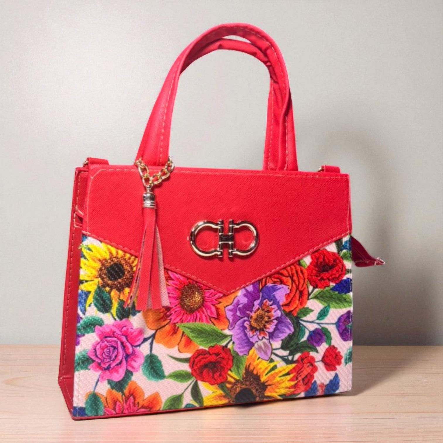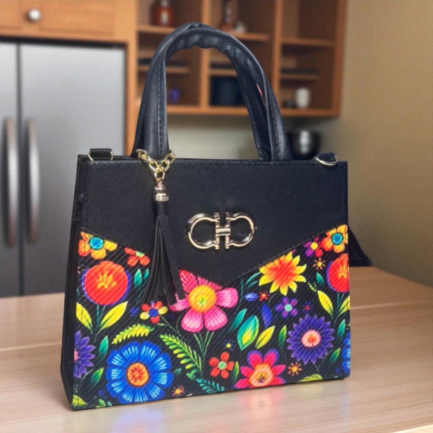 Bolsa AMERICA Mediana Azul con Diseño Floral Artesanal | Elegante y Colorida | Moda Dama Casual y Formal