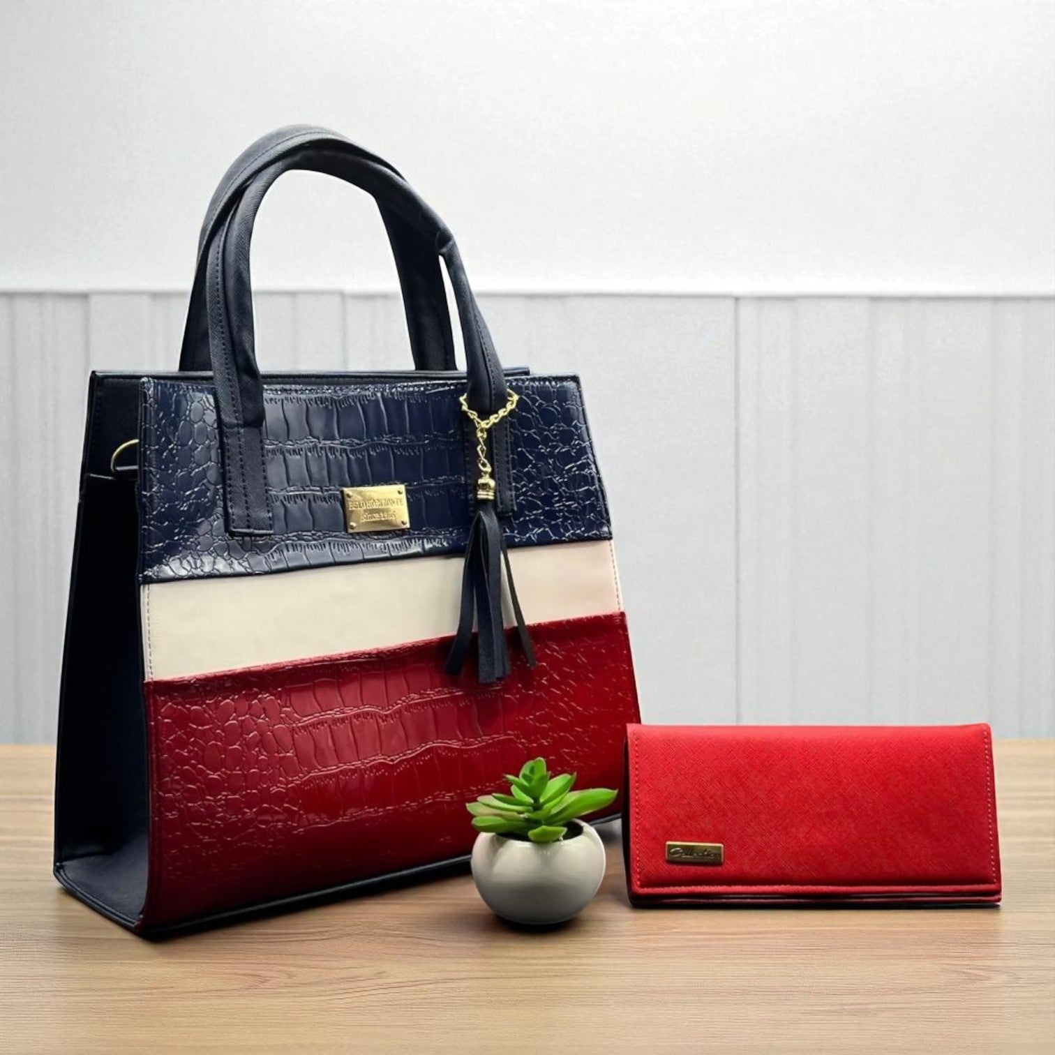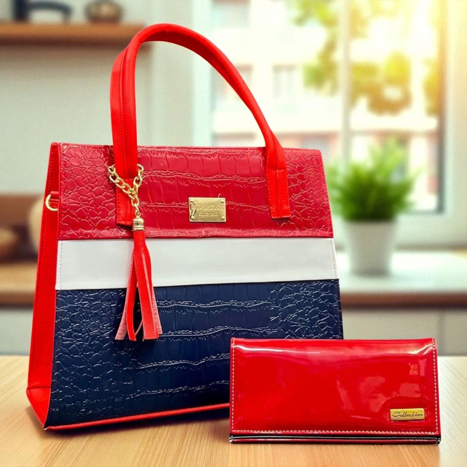 Bolsa de dama Cami croco tricolor rojo azul blanco elegante moda resistente