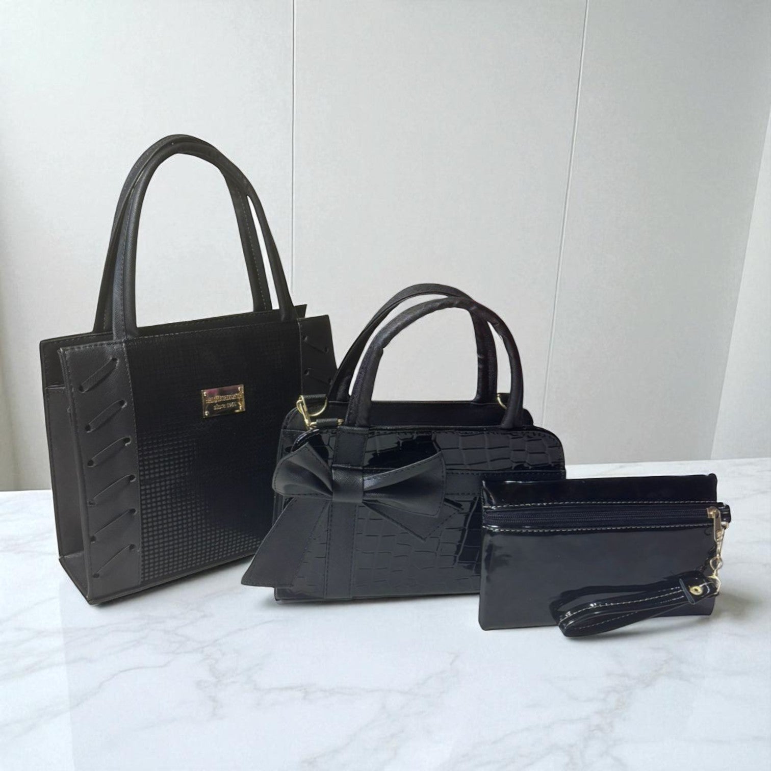 💼 Tres piezas en un solo set que combinan estilo, funcionalidad y moda. Resistentes, modernas y con acabados de lujo que no parecen sintéticos.